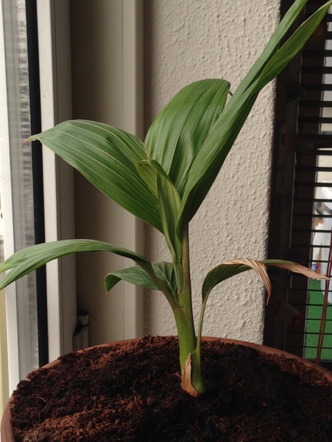 Het eerste 2 vingerig blad lijkt sprekend op die van adonidia merilli grtz