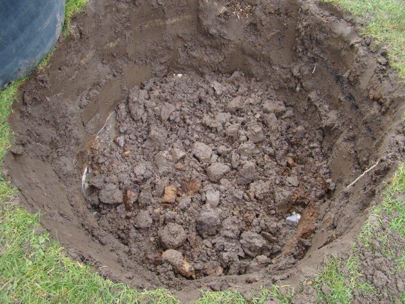 Vandaag een grote put gegraven, 130 cm ... wel door Rudi, ikzelf kan dat niet meer. Wat erin komt ??