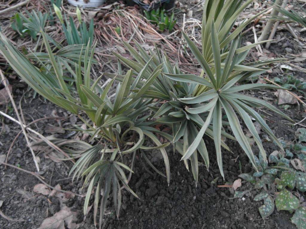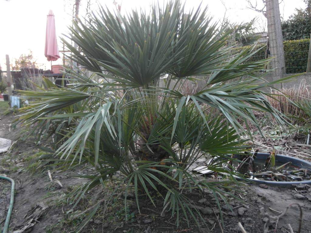 De Trithrinax heeft veel geluk gehad, waar je de grove natte aarde ziet was een put en vele wortels lagen bloot. Ik denk dat de hond wel weer eens wat brood ofzo wou wegstoppen. Het kan een rat ook zijn, want heb hier enorme gaten zitten in dat deel van de tuin.