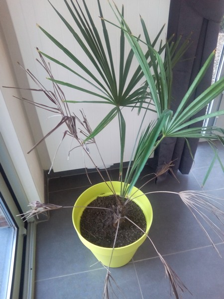 ik ben een beginneling met palm bomen maar zou toch zo graag een groot exemplaar in mijn tuin hebben. Daarom heb ik ongeveer 6m geleden 2 even grote palmbomen gekocht. Echter is er eentje die sinds enkele weken bruin begint te worden. Ik heb de bomen om gelijke manier behandeld (water gegeven etc) maar toch wordt deze bruin.