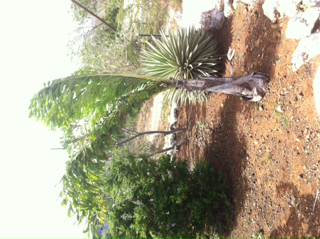 Allen, mijn oom heeft deze nogal (vind ik) vreemde palm in de tuin staan (op Bonaire). Heeft iemand een idee welke het is?