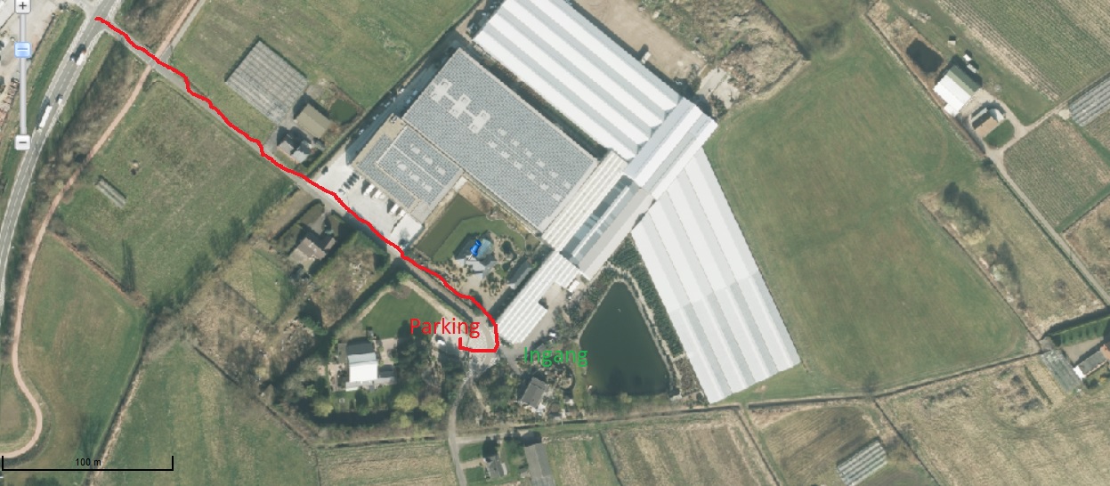 Parkeren bij Petrivo kan recht tegenover de ingang: