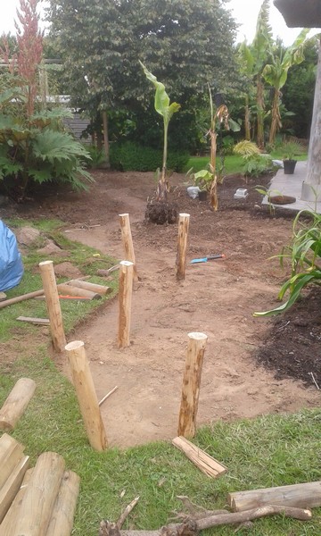 Het idee is om een slingerend pad te maken verhoogd op palen, om meer een jungle effect te krijgen