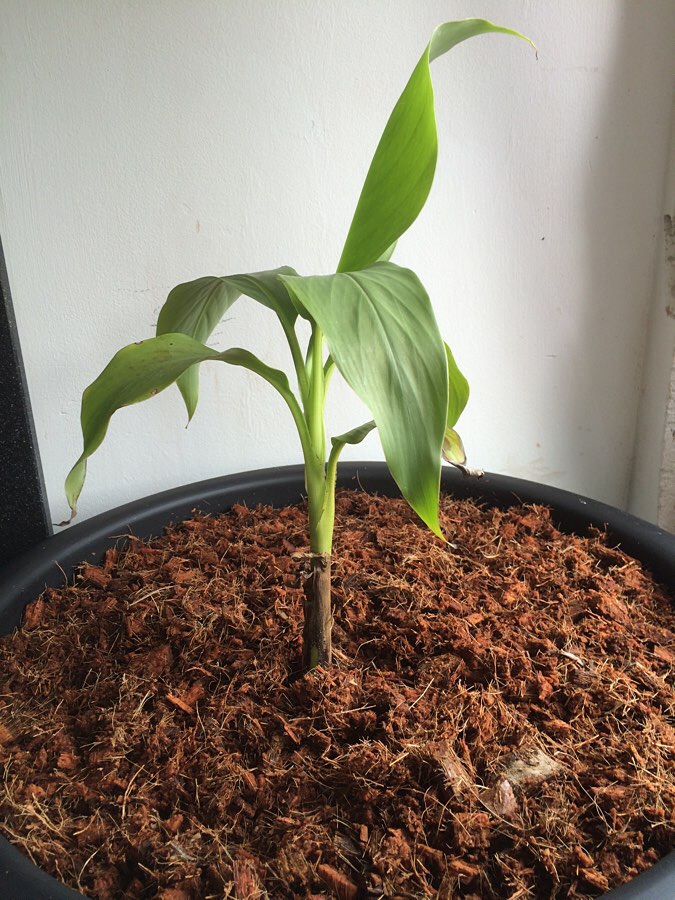 Ondanks dat de tuin nog verre van af is kon ik het toch niet weerstaan om 2 banaantjes mee te nemen.