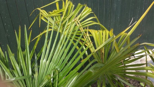 Is de Trachycarpus pas aangeplant, houdt dan rekening met een extra waterbehoefte van de palm zolang deze nog geen nieuwe wortels heeft gevormd. Het afstoten van oud blad is dan een aanpassing. Helemaal te vermijden is het niet, zeker nu het warmer wordt en de verdamping toeneemt. Eventueel kun je de palm wat schaduw geven zodat de bladverdamping wordt beperkt. Trachycarpus hoeft niet per se in de volle zon te staan, integendeel deze palm doet het prima in de schaduw. Zolang hij goed groeit en de vergeling alleen de oudste bladeren betreft, is er geen redenen om je hier zorgen over te maken. Ik zie naast de palm een waterpoel, maar neem aan dat het een folievijver is.
