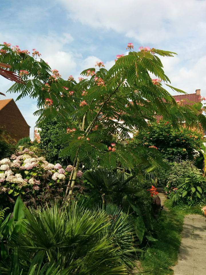 Pieter73 schreef:Marjanne, de soort is een Albizia julibrissin. Maar je wilt waarschijnlijk weten welk ras het is. Ik denk dat het geen enkel ras meer is omdat je schrijft dat het een zaailing is. En zaailingen hebben nooit hetzelfde genetisch materiaal als de moederplant en zijn dus niet raszuiver. Alleen ongeslachtelijke vermeerdering (stekken enz.) levert raszuivere planten. Als ik me niet vergis is het trouwens officieel verboden om Albizia julibrissin "boubri" (="umbrella") zo te vermeerderen omdat er patent op zit.