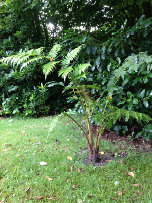 Toen de zomer aanbrak bleken er ook enkele tropische planten in de tuin te staan zoals enkele bananen (Musa basjoo), kiwibesboom (actinidia arguta issai) en cana's. Na opzoekwerk en dit forum is de microbe toegeslagen. Ik heb inmiddels een junglepad gemaakt en enkele borders bij aangelegd met o.a. Boomvaren, Japanse keizersboom (Paulownia tomentosa), Astilboides tabularis, Gunnera manicata (uit het arboretum), Gunnera tinctoria, Japanse notenboom (Ginkgo biloba), vijgenboom en een palm. De bedoeling is dat er nog veel meer komt.