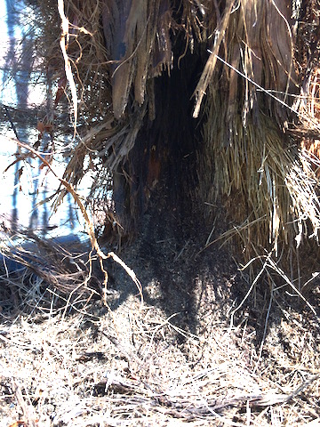 p.s. Ik heb hier een Cordyline australis eveneens een monocotyl, waarvan de bast ooit is weggerot. Het onderliggende weefsel is echter verhard en de plant blijft al jaren in leven al zijn de kroonbladeren kleiner als voorheen. Bij een dicotyl betekent het totale verlies van de bast een zeker einde omdat het resterende kernhout geen vaatbundels bevat.