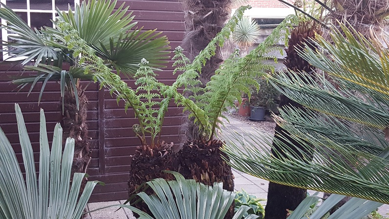 Interessante combinaties maak je Ivan! Yuccas combineren met boomvarens!