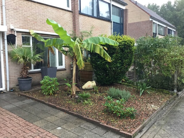 Ik moet zeggen dat ik ook wel extra stimulans heb gekregen om er iets 'exotisch' neer te zetten omdat ik nu al veel reacties krijg van wandelend publiek hoe 'speciaal' onze tuin eigenlijk is (palmbomen, bananen) Veel langslopende mensen vinden dit nogal vreemd en bijzonder. En als ik dan op de bank zie en sommigen verbaasd zien kijken dan is dat prachtig om te zien :D Alhoewel het in mijn ogen niet eens zo speciaal is (dan hebben ze achter het huis nog niks gezien, hehe)