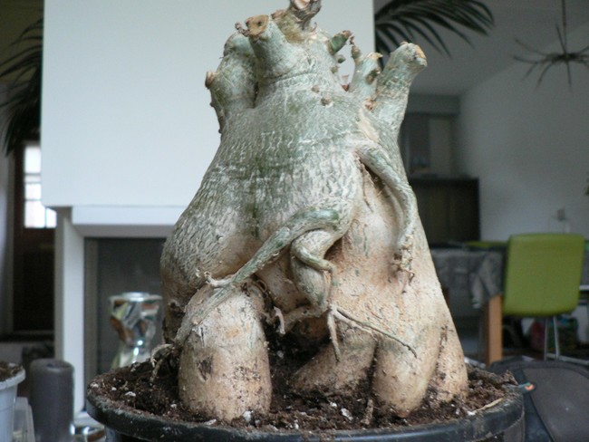 Mooie planten, en zeker als ze bloeien. Heb er zelf sinds zeer recent ook 1 voor het eerst aangeschaft dus ben nog erg onbekend met deze plant. Het tuincentrum had er enkele staan waarvan de meesten bloeiden. Allen roze/rood-wit. De mijne had geen bloemen maar wel de dikste caudex en de meeste uitlopers ;) Staat nu in een pot in de tuin in BR op het heetste hoekje in de tuin. Had van de verkoper begrepen dat ze dat wel waarderen. Heb tegen de tuinvrouw gezegd dat ze deze niet iedere dag van water hoeft te voorzien, maar dat om de dag goed zou zijn. Ook dat was eerder door de verkoper aangegeven. Ben benieuwd hoe jij erover denkt, deze daar in volle grond plaatsen of is de pot toch de betere optie.