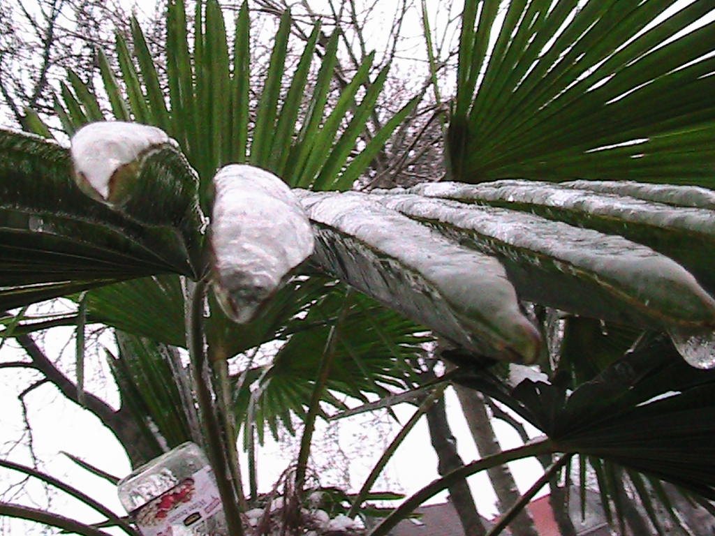 Een sterke trachycarpus moet dit met gemak aankunnen, mocht je trachycarpus deze ''winterse buien'' niet overleven is die niet geschikt voor ons kikkerlandje. Wel kan periodes van vriezen, overdag dooi en in de nacht weer vorst eventueel leiden tot schade in het groeipunt.