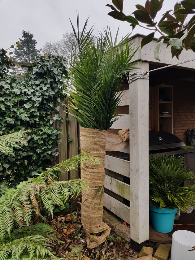 ik bescherm mijn canarensies normaal enkel met een vliesdoek en lichtslang en dat heeft vorige winter ook gewerkt. had wel veel bladschade maar herstelde prima....deze winter geen bescherming met een bruine plant als gevolg....