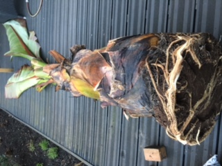 Ook een update van mijn kant. Mijn Ensete die ik op 12 januari naar binnen heb gehaald leeft ook nog. Het opdrogen van de snijvlakken duurde echter eeuwig. gedurende 1,5 maand heb ik elke dag wel de snijvlakken afgedroogd. ik kan mij voorstellen dat dit in een koude, natte omgeving tot rotting leidt. Omdat het zolang duurde totdat alles was ingedroogd, bleef de Ensete dus wel op mijn bureau staan. op het oosten, klein beetje indirecte zon door een kantel/kiepraampje.