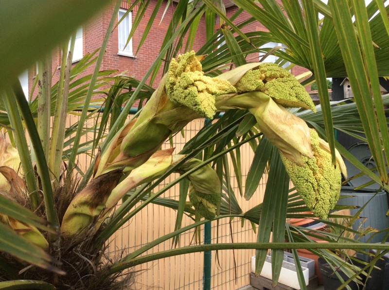 1 keer per maand (start meestal in Januari t/m Sept) vloeibare voedsel voor mediterrane planten (rode kleur flesjes). Palm is niet meer te houden en oersterk. Ding groeit zeker nu 30 Cm per jaar en de speren blijven eruit komen. Op warme zomeravonden lekker natnevelen.