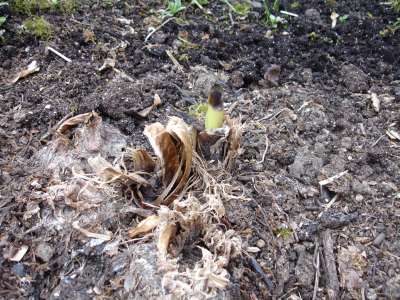heb vandaag leven ontdekt bij mijn afgevroren musa basjoo,het is sneller dan vorig jaar toen was het eind mei