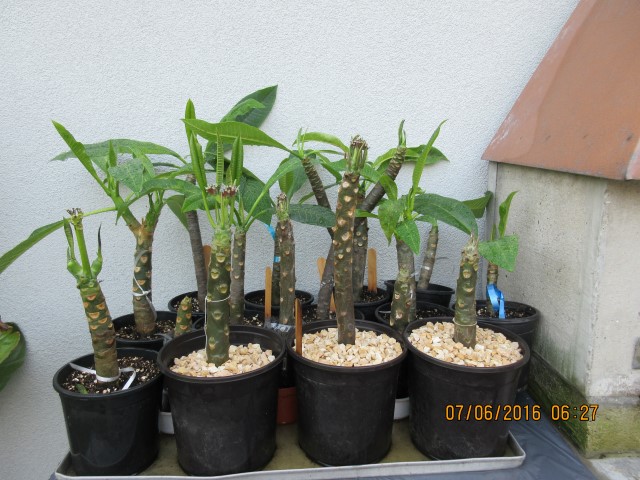 Ze komen niet allemaal van op vakantie hoor..! ik heb gewoon van mijn oude Plumeria's stekken genomen, vorig jaar heeft er geen enkele hiervan nog gebloeid dus vernieuwen dacht ik...