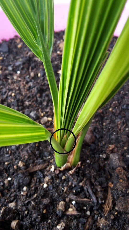 Hier een paar foto's van het eerste gesplitste blad van een Phoenix Canariensis zaailing: