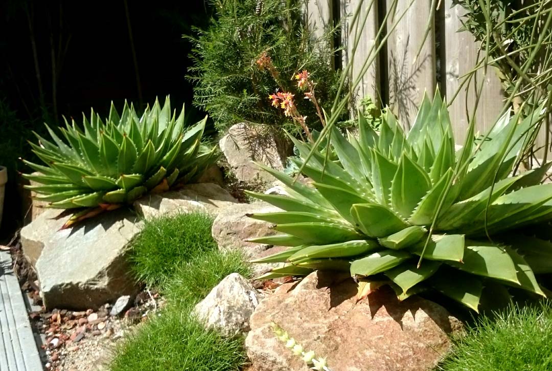 Staan deze planten tussen de grote stenen geplant? Zoja, heeft dat dan een reden en is het beter dan gewoon plat tegen de grond te planten?