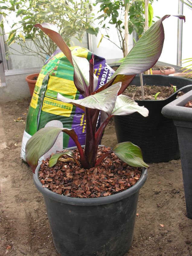 Toen ik hem heb gaan halen kwam hij uit de serre met grote Bladeren.
