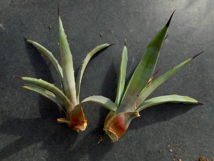 Net als palmen ontwikkelen deze planten een weinig gedifferentiëerd wortelstelsel met zogenaamde adventiefwortels die steeds opnieuw uitgroeien van het basale meristeemweefsel. Beschadigde wortels zal de plant vervangen door nieuwe. Stekpoeder kan vermoedelijk geen kwaad. Succulenten blijven in droge toestand lang levensvatbaar. Een Aloe in mijn collectie waarvan de wortels verrot waren door overwatering heb ik na een tijd drogen op verse grond gezet zoals boven omschreven. De plant blaakt inmiddels weer van gezondheid. Afgesneden Aeonium arborescens stekken zijn na droging in voornoemd grondmengsel beworteld geraakt. De Agave stekken die geruime tijd geleden werden afgesneden zullen vermoedelijk ook nog wel aanslaan.