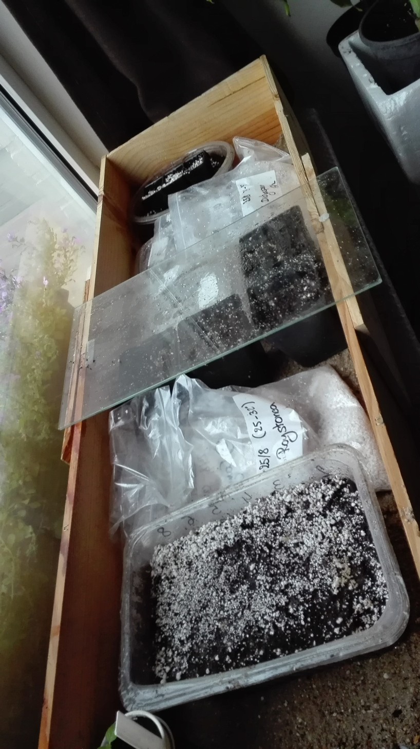 Voila ben afgestapt van mijn omgebouwde diepvrieskist naar een veel kleiner model wel met dezelfde kabel en zand maar doordat die veel kleiner is zal die veel sneller opwarmen. Liggen natuurlijk doorzichtige plastiek bakken over anders zou de warmte meteen weg zijn
