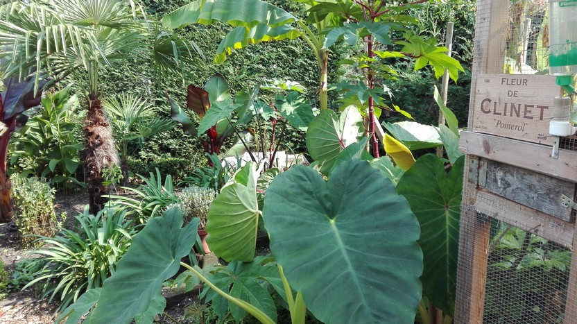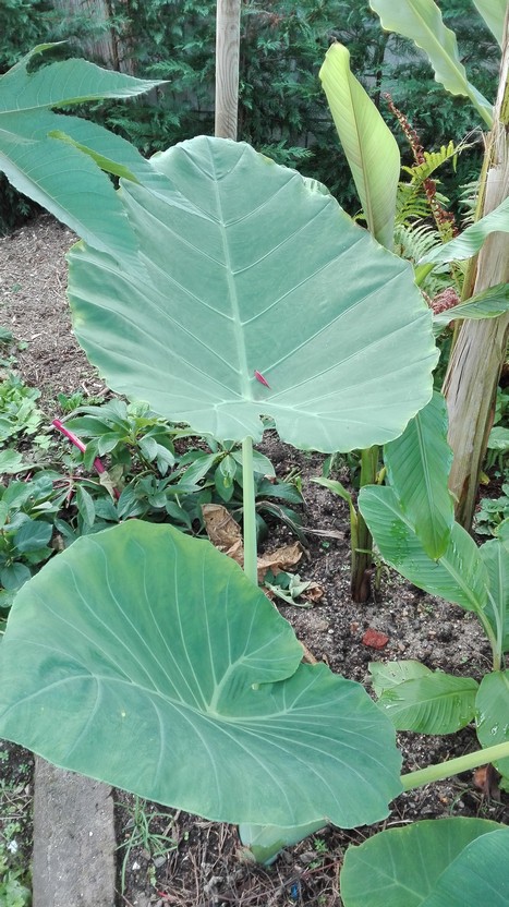 Wat is de naam van de plant met rode stam, staat rechts van de basjoo. De bladeren lijken op die van een tetrapanax of is het een tetrapanax?