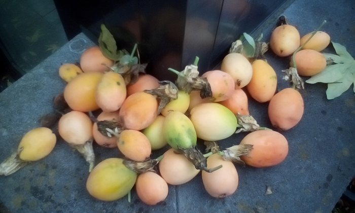 Gisteren ook de rijpe Passiflora 'Alata' geoogst en geproefd, niet slecht maar in verhouding tot de vrucht was er niet veel te eten. Heb de zaadjes er netjes uitgehaald, ga eens proberen wat eruit komt, de ene is gekruist met caerulea, ene met edulis'Frederickii' en de derde met 'Byron Beauty'