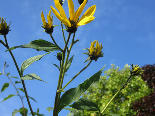 Yacon heb ik hier ook planten staan van 2 meter en hoger,maar nog geen bloemen