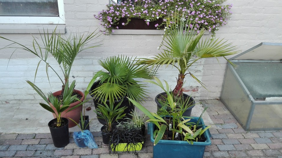 Washingtonia Robusta,Trachycarpus Princeps en Butia Yatay, Sabal Bermudana, Brahea Edulis en Trachycarpus Takagii, Roystonea Regia,Joey Diamond, Areca Catechu, Chamaedorea Hooperiana, Chamaedorea Pinnatifrons,Jubeae Chilensis, Livistona Decipiens, Ptychosperma schefferii, Ptychosperma macarthurii, Areca Tuckerii, dictosperma album, licuala ramsayi, Sabal Bermudana (Van Rob)