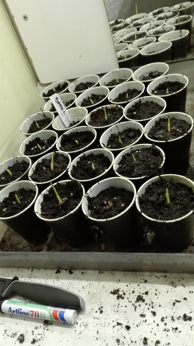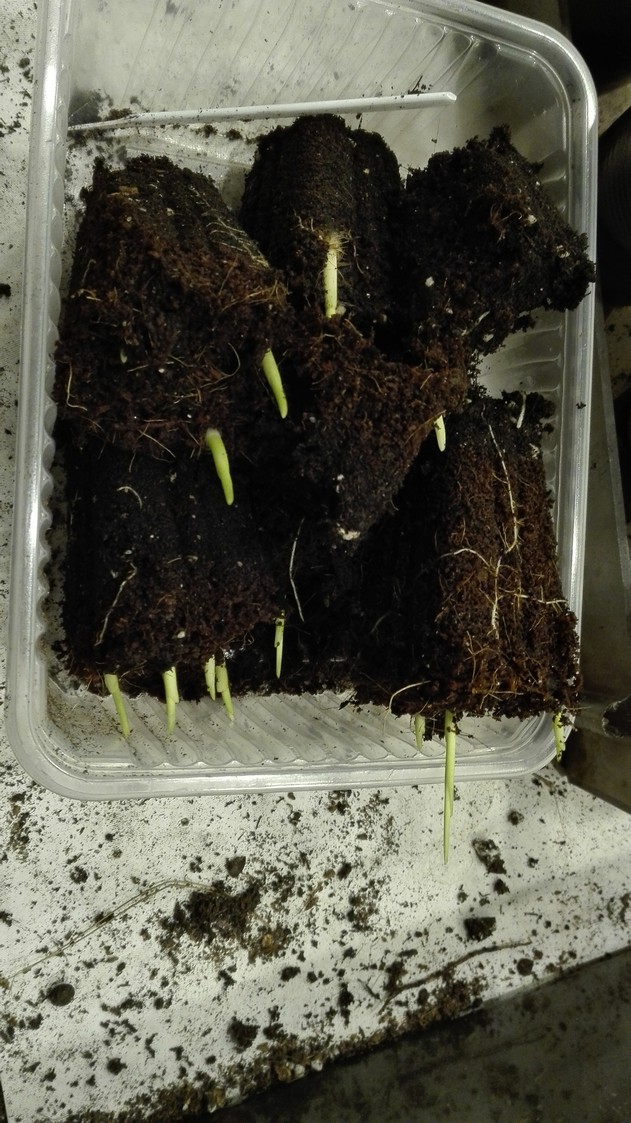 OK ik heb mijn planten ingedeeld in onkiemt (wil zeggen dat ze wortel hebben maar nog niks zichtbaar is boven de grond) en ontsproten (net zichtbaar boven de grond en nog geen volledig blad)