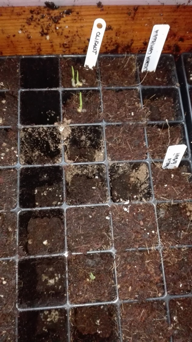 OK ik heb mijn planten ingedeeld in onkiemt (wil zeggen dat ze wortel hebben maar nog niks zichtbaar is boven de grond) en ontsproten (net zichtbaar boven de grond en nog geen volledig blad)