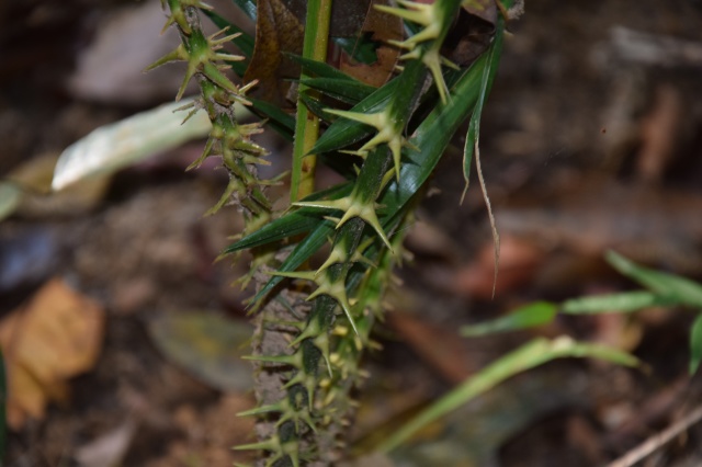 An majestic moderate to large solitary unarmed tree palm. TRUNK up to 20m, 31cm diam. (Near crown 18cm); Base sometimes bulbous; Nodal scars faint, nodes 1cm, internodes 3-5cm, sometimes longitudinal holes where mouse lemurs sleep, usually no remnants of sheaths. LEAVES 18-32 in the crown, porrect to slightly arching when positioned in sun; Sheath, Open, length 50cm, wide 35cm, brown-tomentose externally; Petiole, length 30-40cm wide 4-8cm, convex with sharp edges; Rachis length 2,9m, mid leave convex and white-, green, to brown tomentose; Leaflets regular, rigid, lanceolate, oblique, straight, acute, dark green, 49 on each side of the rachis, leaflet length 55cm near the petiole to 80cm near the middle and end. PISTILLATE INFLORECENCE interfoliar, solitary, grey brown tomentose, total length 130cm, branched to 1 order, peduncle length 60cm, rachis length 54cm, rachillae 40 – 70, lower rachillae length 33cm highest rachillae length 16cm, FRUIT obovoid to oblong. EOPHYLL bifid