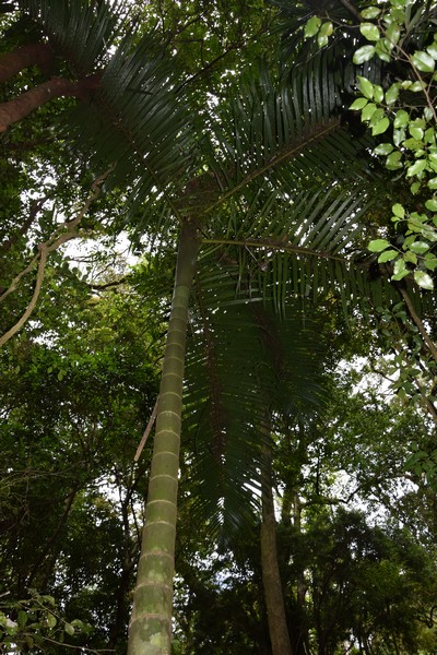 NP Montagne D’Ambre, Antsiranana region, plentiful from entrance near Joffreville to cascade Antomboka up to Lake Maharasika from 800 to 1150m altitude. Growing in small groups of 3-10 adult trees. Local names ‘Kindro’ or Palmier royale. Wood used to make houses, fruit eaten by lemurs and parrots. Mouse lemurs are housed in longitudinal holes in the trunk. Flowering time according to guide is June – July.