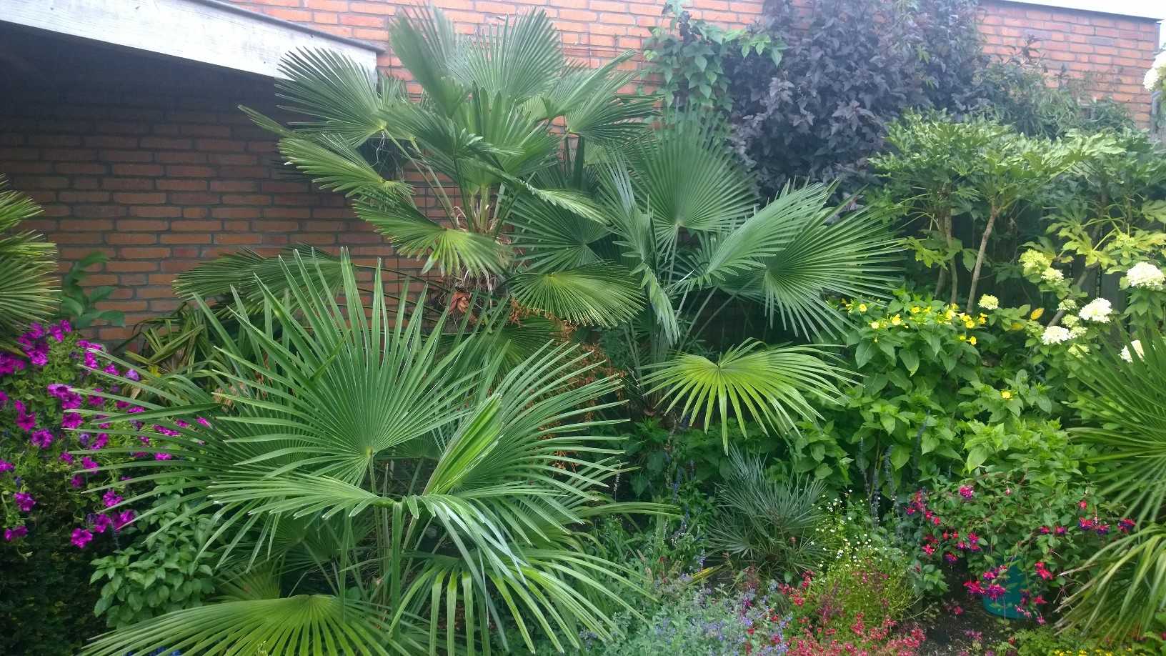 Mooie update Kees! Hier gaat ie ook gestaag, maar heb het idee dat ie wat minder snel groeit. Het vierde blad van dit seizoen ontvouwt zich net. Dat is nu wel iets meer dan andere jaren, ik heb er meestal rond de vier of vijf per jaar. Maar nu in juli het vierde blad betekent dat ik dit jaar waarschijnlijk zes ga halen. Dat zou ook betekenen dat de groei wat opschaalt. Er is blijkbaar wel degelijk variatie. Die van mij lijkt in bouw en voorkomen net een fortunei. Niets geen gedrongen groei meer. De bladeren zijn net zo groot en worden ook wat gevoeliger voor knikken, net als fortunei. Nog geen bloei gehad dit jaar, maar de plant is bij mij erg groot. De plant is tot aan de bladpunten nu twee meter hoog. Stam een cm of zestig. Hier zie ik geen eenzijdige beworteling, maar een heel mooi regelmatige groei. Wel ontzettend veel van dat tomentum op het groeipunt en de kenmerkende, bijna zwarte 'draden' vanuit de stam. jij hebt een dame, wellicht heb ik een heer. Geen idee of dat de reden is van de verschillen, maar wellicht zoals Han al aangeeft, genetische variatie. Laatste foto is ook een vergelijk met de princeps hybride, links op de foto. Daarachter staat een wagnerianus. De hybride opent ook net zijn vierde blad en groeit dus net zo snel als de echte. Maar de hybride staat pas sinds vorig jaar in de vollegrond, de echte al sinds 2009.