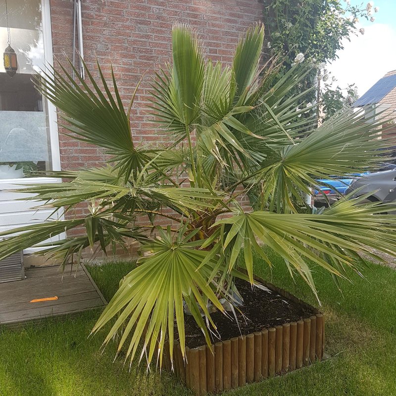 Ik heb een washingtonia in de volle grond staan.