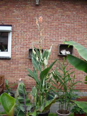 een nieuw blad van de maurellien 2 keer nieuw leven in de tuin,heel grappig eigenlijk,ik deed s'morgens de achtedeur open en er dwarrelde zowaar een jong van een merel voor mijn voeten neer waarna het zich snel uit de voeten maakte