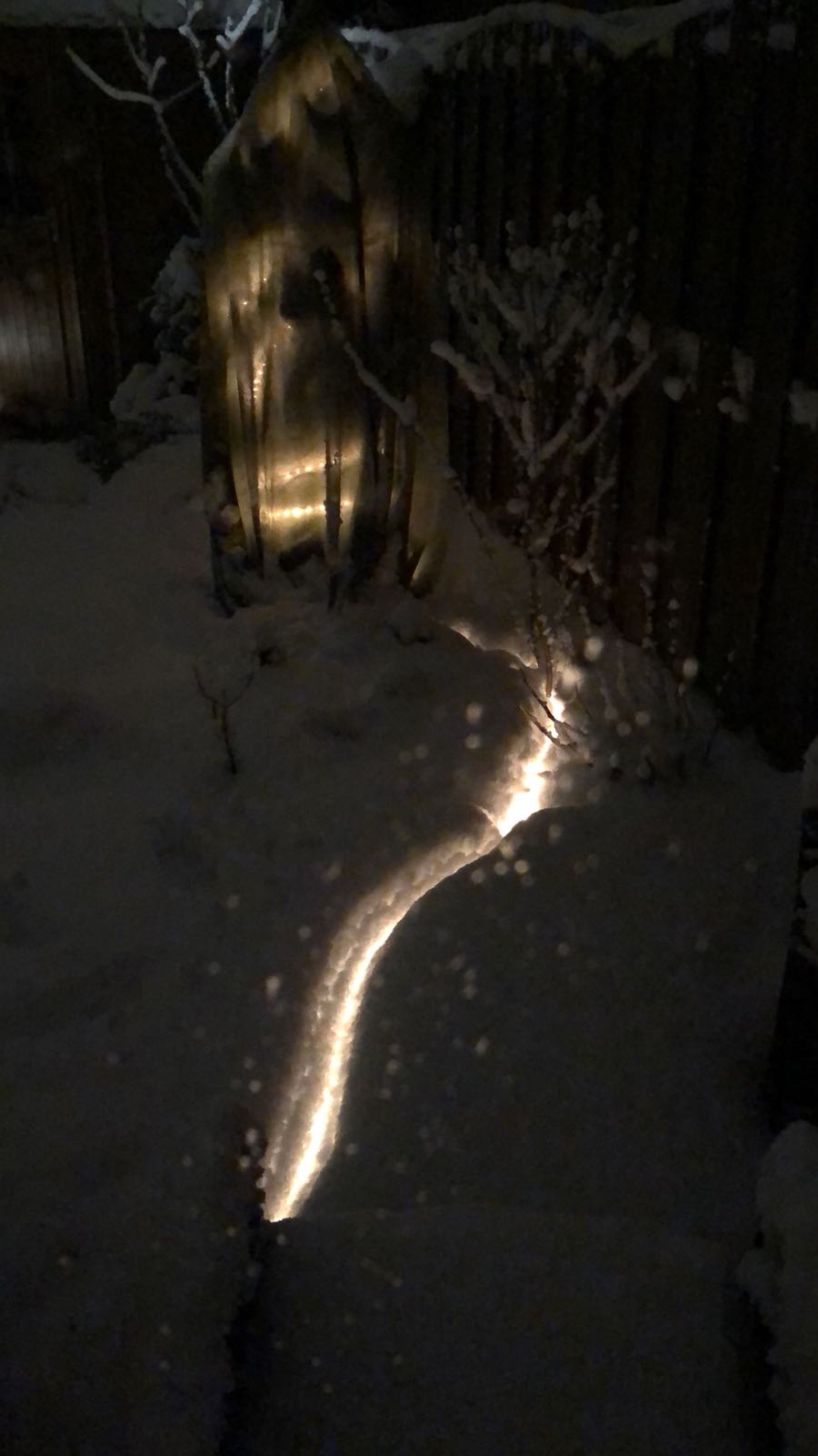 Maar je zal toch volledig afhankelijk zijn van het nog komende weer de komende maanden. Je hebt het goed aangepakt maar een beetje matige of strenge vorst zal toch kunnen doordringen en schade aanrichten. Ik hoop met jullie mee dat het zo zal verder gaan zoals nu en ben dus ook erg benieuwd naar het resultaat. Nog een tip, die 2m a 3m lichtslang die niet rond de plant zit en zo'n mooie gleuf in de sneeuw maakt, die zou ik toch rond de plant leggen maar op de grond. Dus om de grond (wortels) errond ook wat te beschermen. Moet je maar een langere verlengkabel gebruiken als dat de reden is dat het nu zo gedaan is