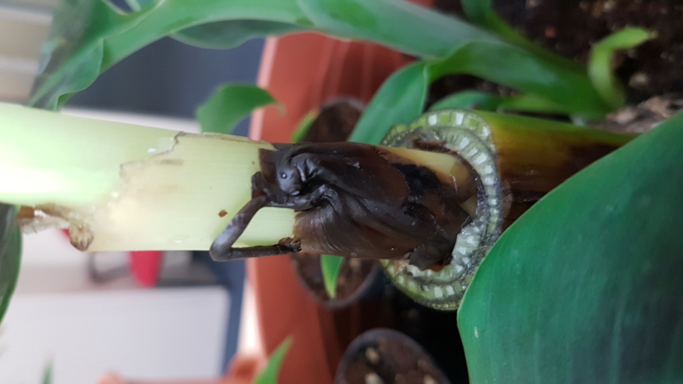 Reeds 1 maand een verdikking waargenomen op ongeveer 10 cmvan de 50 cm pseudostam, is een stam dus opgebouwd uit bladeren, buitenste blad is onderste/laatste blad en nieuwste is het kern blad de bekende sigaar.