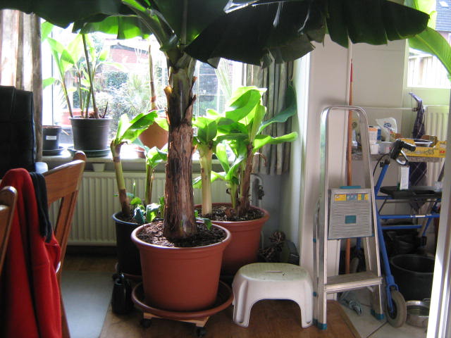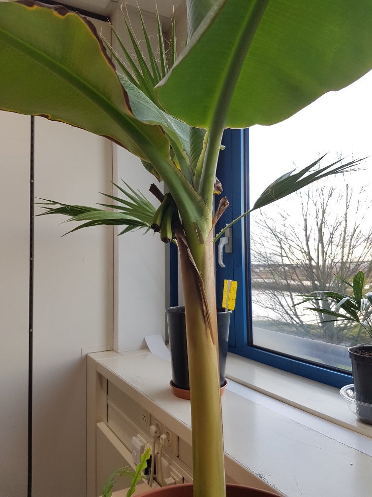 Ik heb de bladeren op 4 November ingekort en binnen plaatsbaar gemaakt. 80 en 85 cm stam met blad jongens van 180cm