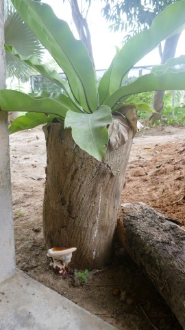 Op een boomstronk in oze tuin heb ik een varen op geplant. Nu zag ik gisteren dat onder op de boomstronk een zam aan het groeien was. Vind hem persoonlijk wel erg mooi. Met googelen heb ik mogelijk de naam gevonden, het zou kunnen gaan om een lak zwam, Ganoderma soort.