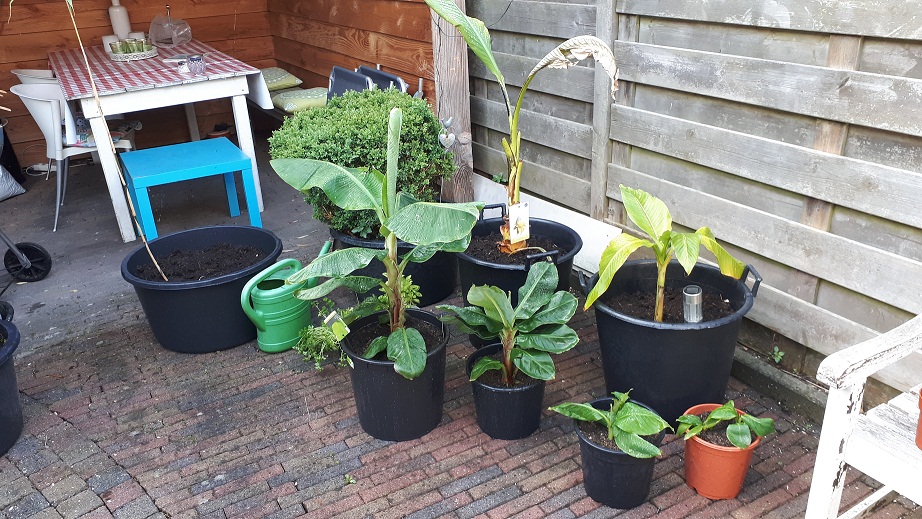 Hoi, na een aantal verwoede pogingen met de Musja basjoo ben ik over gegaan op de Dwarf Cavendisch, omdat ik er 1 heb die de winter prima heeft doorstaan binnen in de woonkamer en het een sterk soort is.