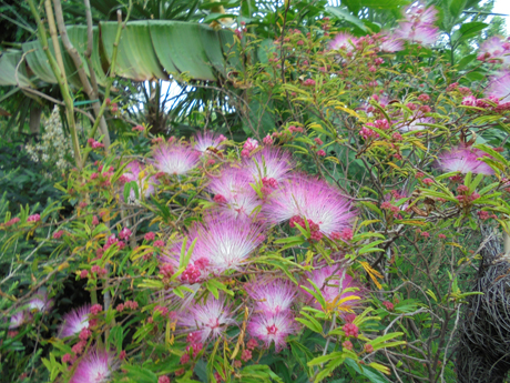 Een mooie collectie kuipplanten! Die met rose pluimen is dat Calliandra surinamiensis? Ik zag deze laatst als kuipplant aangeboden maar zonder bloemknoppen. Die houd je waarschijnlijk 's winters boven 10°C ? In mijn huidige kas is zo'n hoge temperatuur in de winter niet haalbaar.