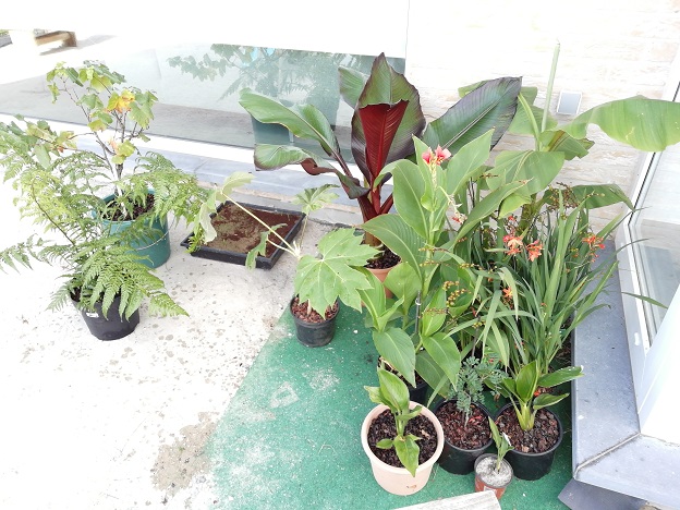 We hebben ons ook eens gewaagt aan het zaaien; enkele mussa varianten en canna's. Er steken er momenteel al een paar hun kopje boven de aarde