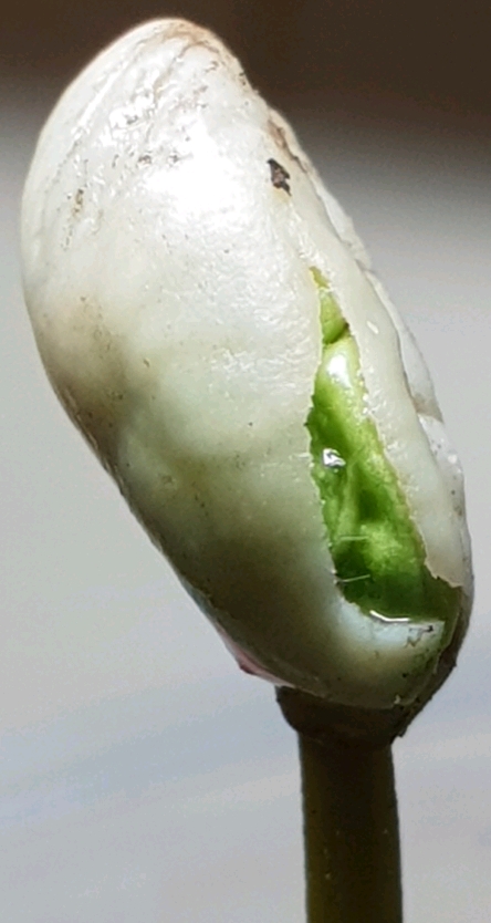 Grappig, een 1e boon scheurt open om het blad de vrijheid te gaan geven,