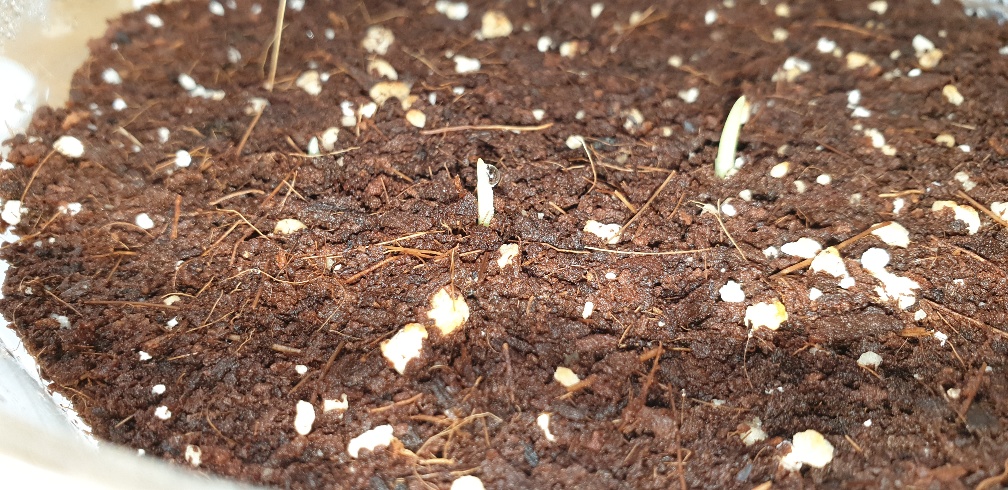 Na 3 kiemers op het perliet in de propagator gezaaid 18 Jan nu ook 1 gezaaid 6 Jan in coco/perliet mix.