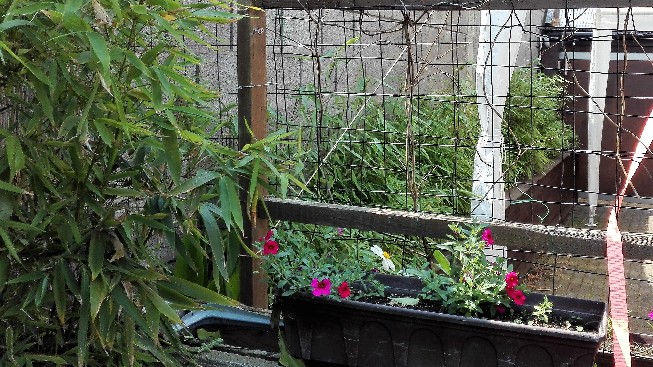 Mijn complimenten had je al gehad. ;) De Toscaanse Jasmijn in de gekleurde pot kan je een driehoek in steken van van bamboe stokken. (model tipi) Dan creëer je een klim mogelijkheid.