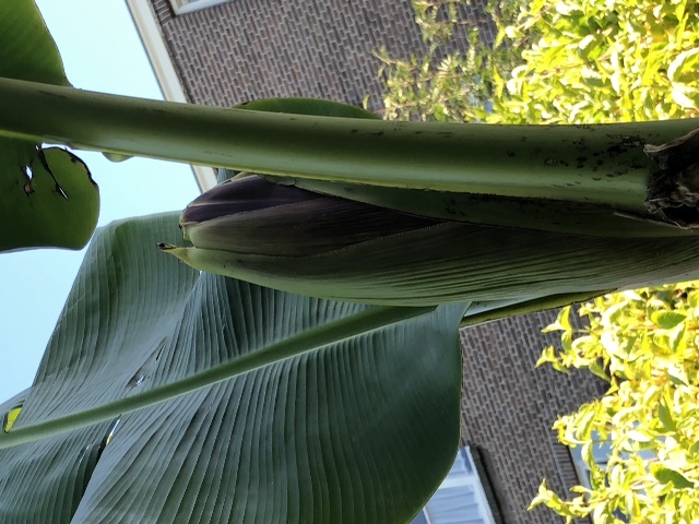 Ja zware bevalling idd!! Hopelijk heel veel banaantjes! Vorig week zag ik het eerste puntje van de bloem. Heb overigens nog geen ervaring met de snelheid van deze bloem ontwikkeling.