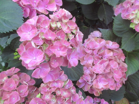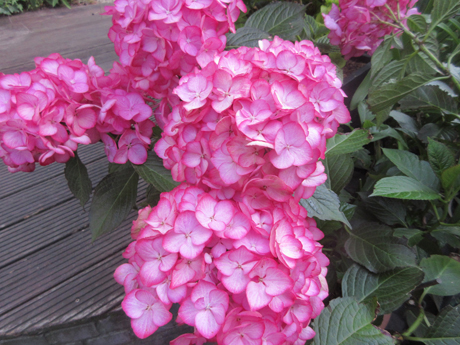 Mijn hortensia zie er nu al niet meer uit dus ik ben wel jaloers op de jouwe..en ze zijn bijna allemaal mooi roze zonder valse blauwe/paarse ondertoon...wat hier in de volle grond ook moeilijk is zonder te kalken..of potje “ hortensia roze “ erbij te kiepen..( de grond is hier zuur dus van nature zien de struiken er hier niet uit door hun valse kleur ze hebben een identiteitscrisis dus voert men ze hier potjes blauwmaker of rozemaker :mrgreen: ) kleurvaste cultivars zijn hier nog niet omdat het hier allemaal wat ouder is...ik ben denk ik hier een van de weinigen met planten die op eenjarig hout bloeien...