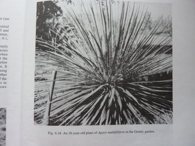 probeer een foto van mijn vroegere Agave filifera bij te voegen... en een zwart-wit foto van Agave multifilifera uit het vermelde boek... Dit is wel geen kijkboek, maar alle details van de planten en de bloemen zijn erin te vinden.